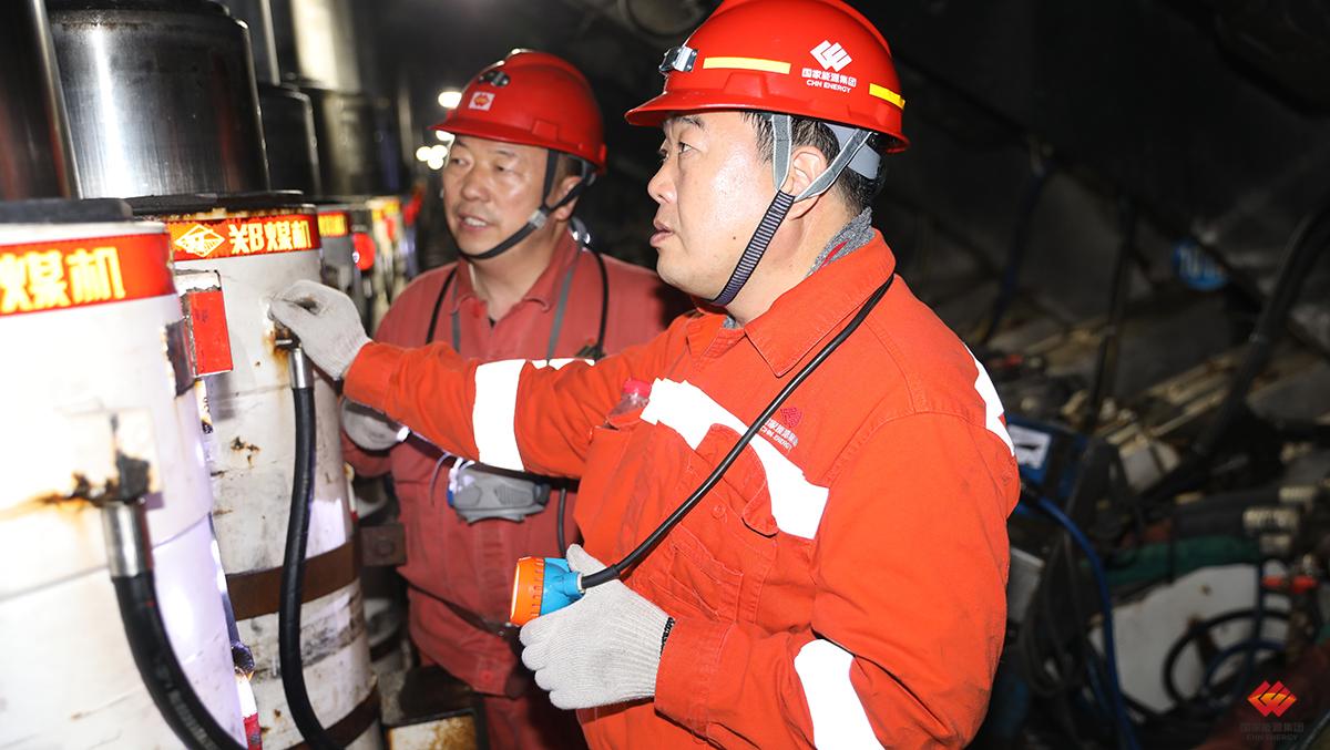 圖為員工檢修支架保證工作面安裝