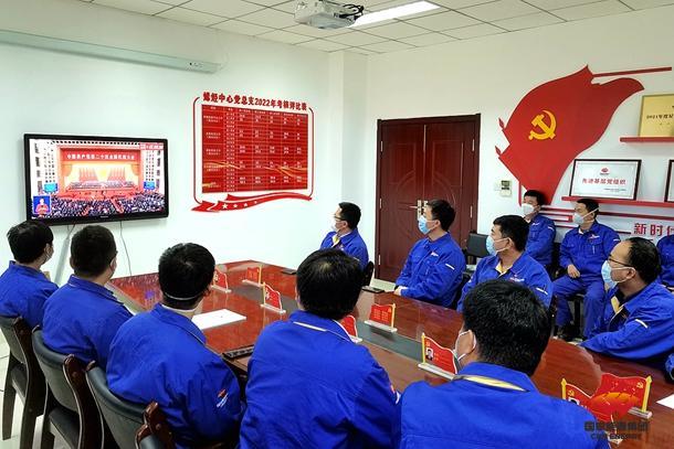 包頭化工黨員在黨建活動室集體觀看中國共產(chǎn)黨第二十次全國代表大會開幕會盛況。