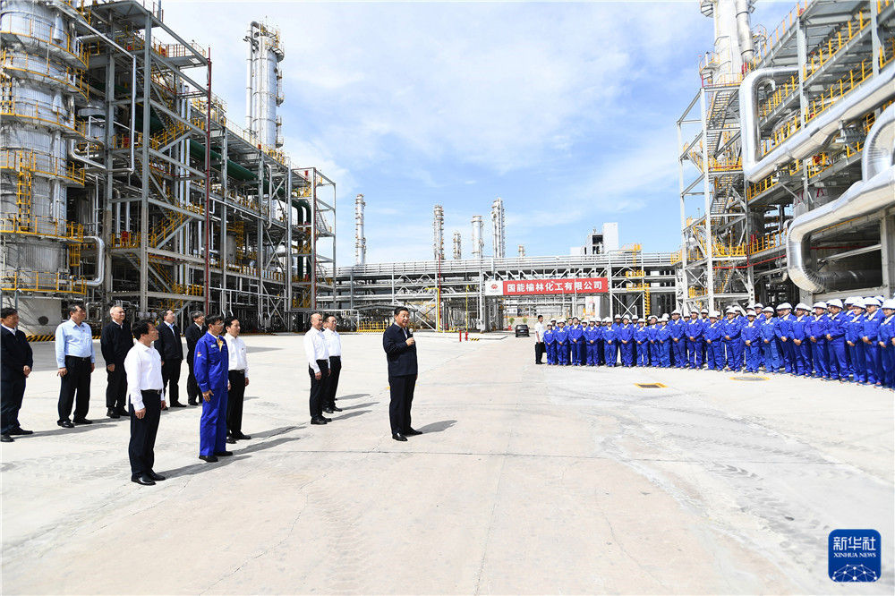 9月13日至14日,中共中央總書記、國家主席、中央軍委主席習近平在陜西省榆林市考察。這是13日上午,習近平在國家能源集團榆林化工有限公司年產(chǎn)40萬噸乙二醇項目現(xiàn)場考察。新華社記者 李學仁 攝