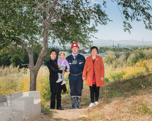 國(guó)家能源集團(tuán)大雁公司礦工 關(guān)嘉巖(右一)一家,父子均為礦工。