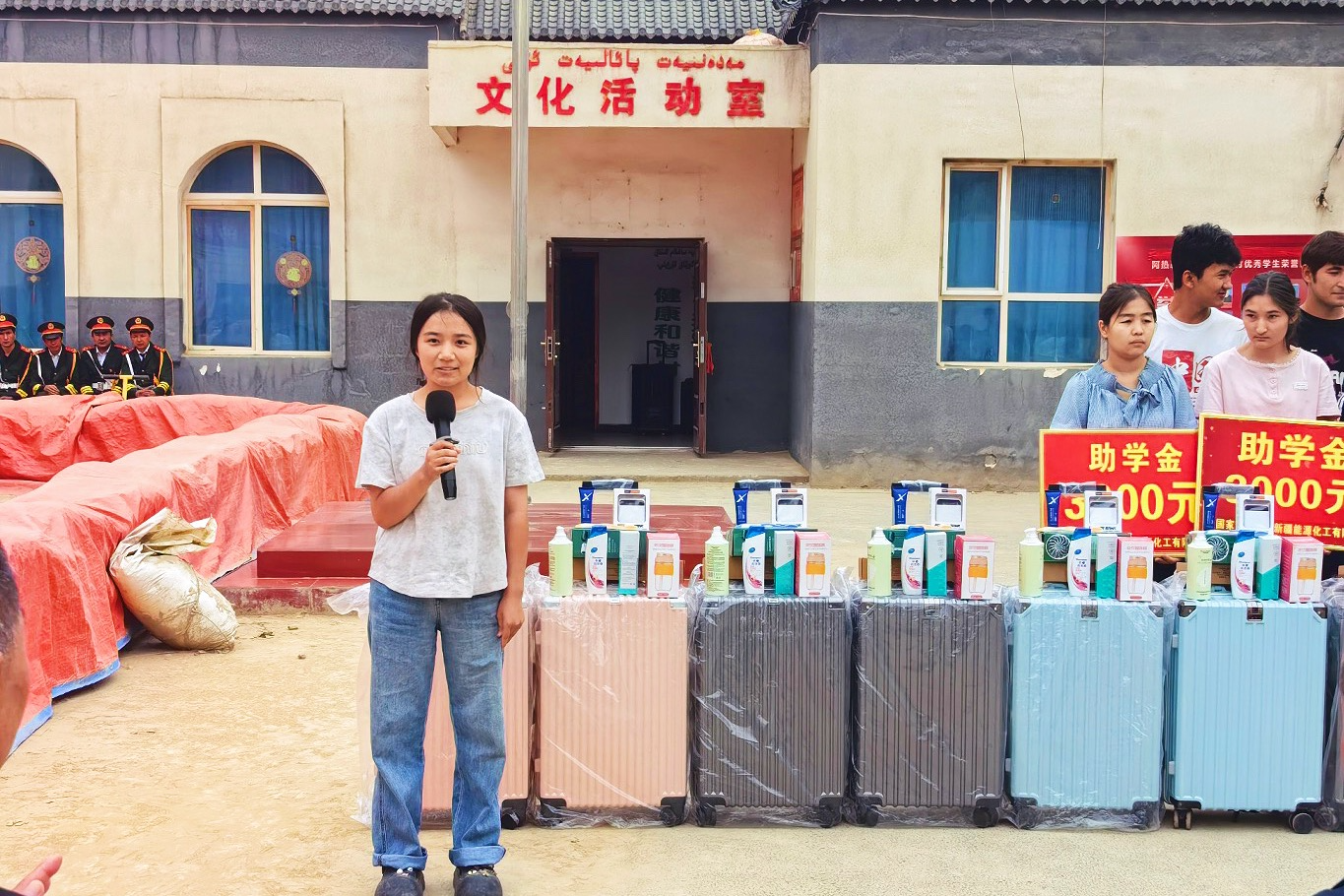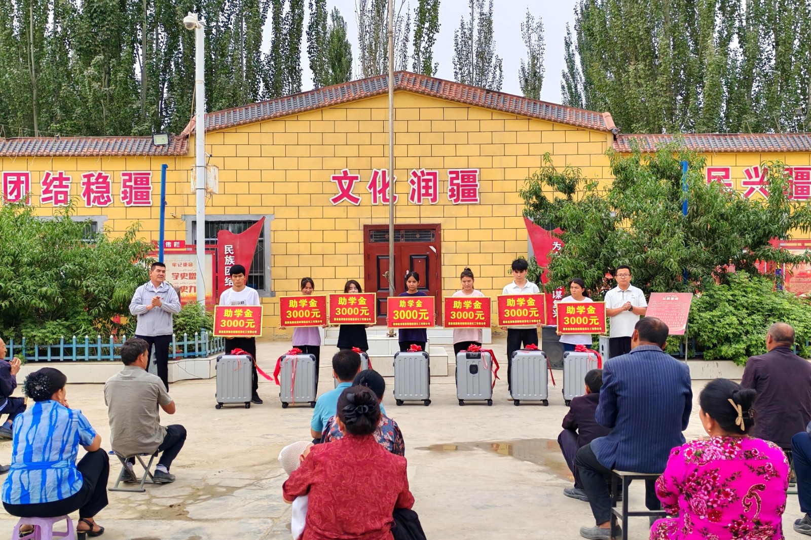 “拿到喀什大學錄取通知書時,我既高興又憂心?!卑褪惨才_巴什村的素比努?麥托合提攥著助學金,哽咽地說起家里的情況,“我家就幾畝小麥,爸媽為供我和妹妹上學一直省吃儉用,大學的學費是一筆不小的開支,為此一家人一籌莫展?!彼皖^蹭了蹭禮包里的筆記本,眼眶紅了:“工作隊叔叔們得知我考上大學的消息后,常安慰我們家人‘別愁’,鼓勵我安心去上學。今天給我的資助學費和行李箱,解決了我入學的燃眉之急,感謝工作隊的叔叔們!我一定好好學習,畢業(yè)了就回家鄉(xiāng),要讓家鄉(xiāng)的小麥長得比現(xiàn)在還壯!”