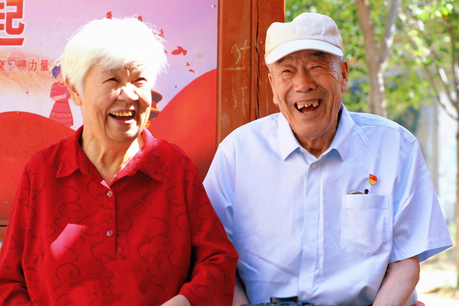 圖為退休職工于雄華與愛人尤秀蘭老人臉上洋溢著燦爛的笑容