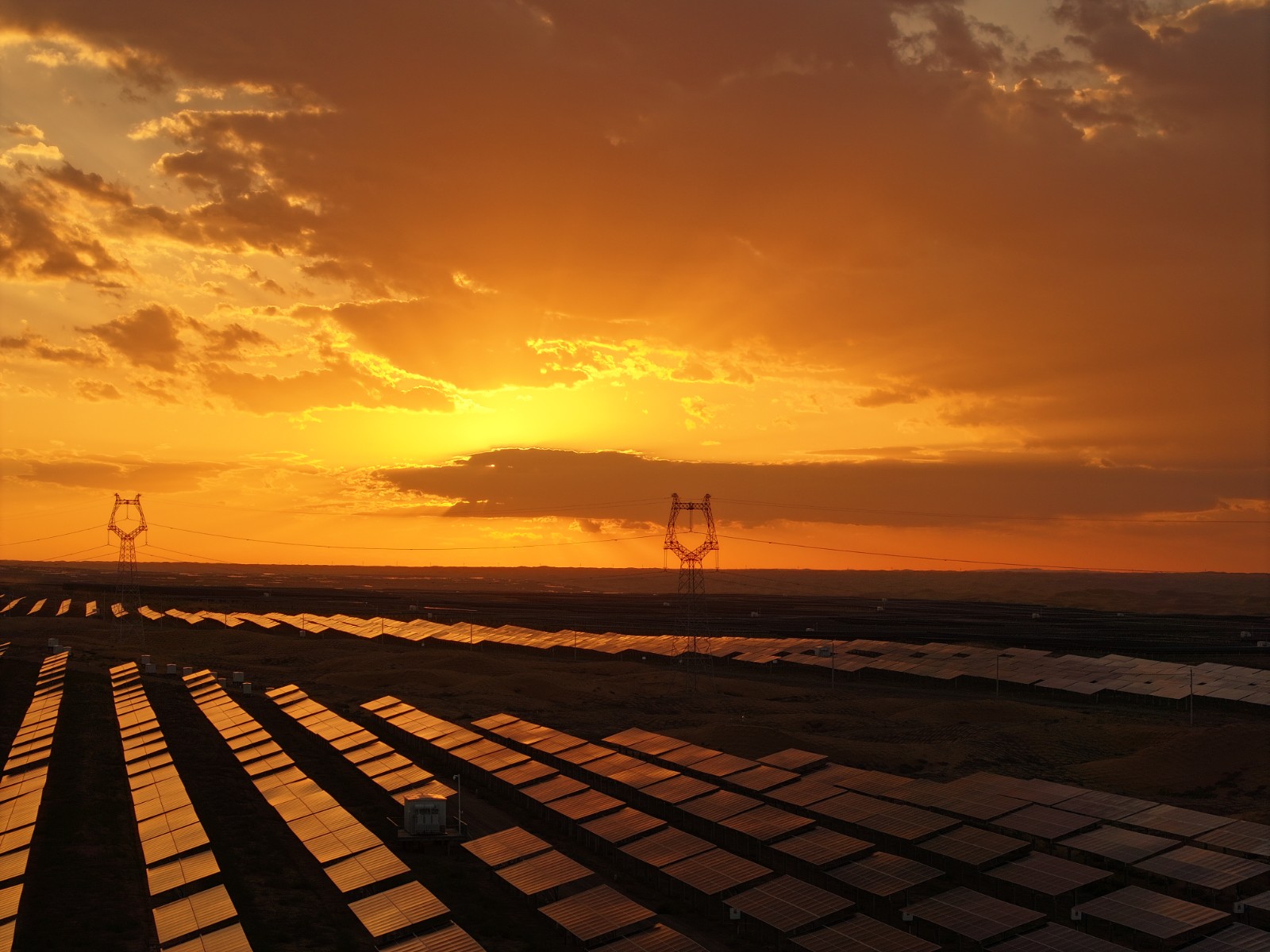 雨后的晚霞中,騰格里沙漠的光伏陣列金光閃閃,板下沙生植物舒展枝葉,沙面被生物結(jié)皮緊緊包裹著。在這片曾經(jīng)沉寂的土地上,正上演著新時(shí)代能源開發(fā)與生態(tài)保護(hù)同頻共振的國(guó)能故事。