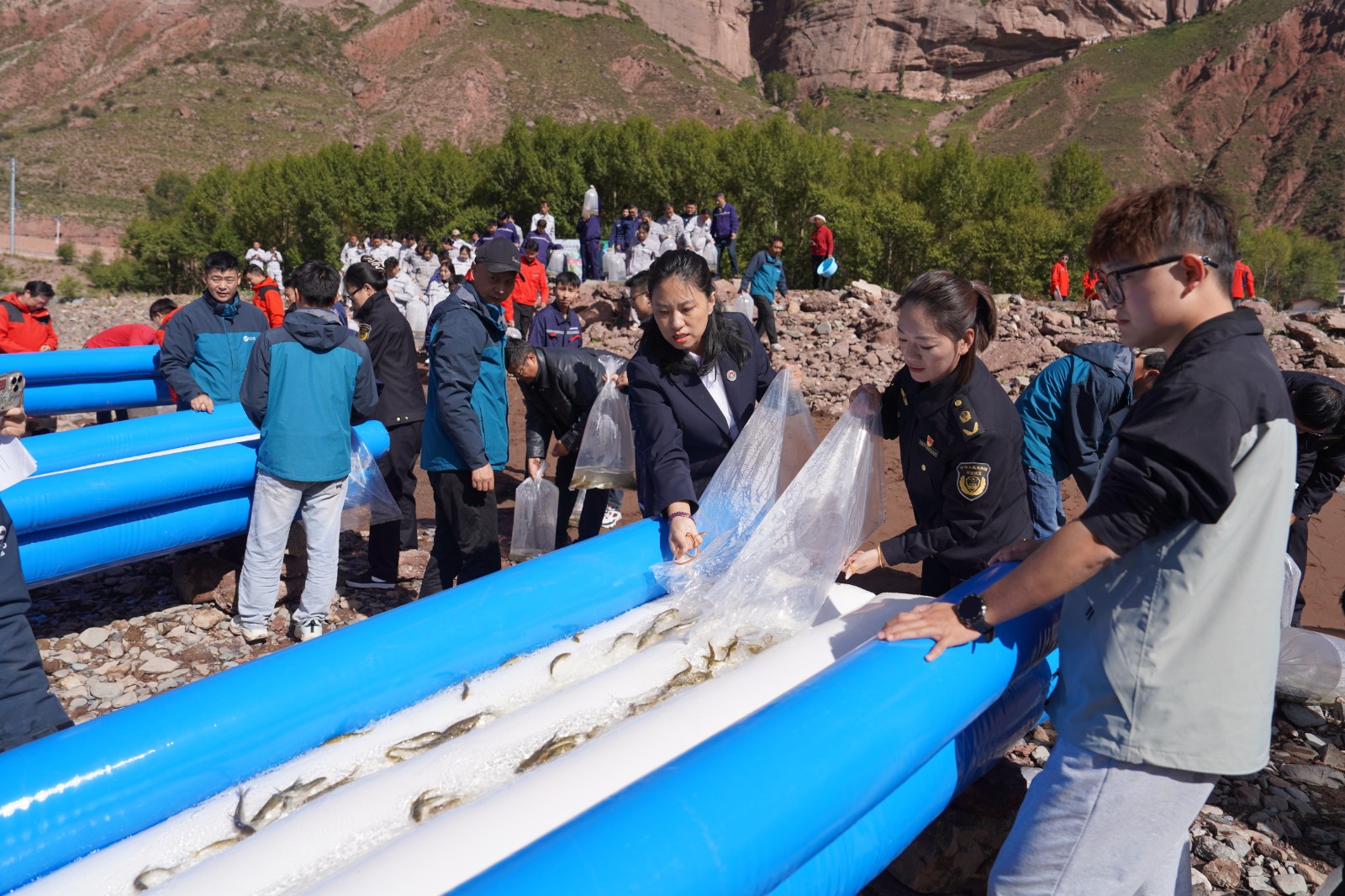 這一天,瑪爾擋水電站職工代表、當(dāng)?shù)卣硪约爸苓吶罕婟R聚黃河岸邊,共同見(jiàn)證27.1萬(wàn)尾魚(yú)苗放歸水庫(kù),為這片水域注入嶄新的生機(jī)。
