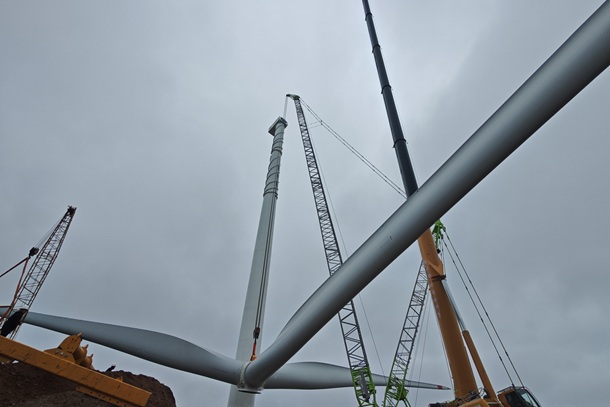 “風(fēng)速確認(rèn)3米每秒,符合吊裝條件,開始試吊!”地面總指揮任建朋的聲音鏗鏘有力。指令下達(dá),現(xiàn)場(chǎng)氣氛驟然凝固。隨著葉輪與支架連接的螺栓逐一拆除,碩大的葉輪穩(wěn)穩(wěn)懸停在空中。