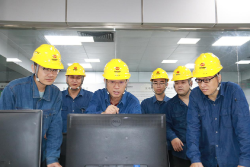 三期集控室運(yùn)行乙班機(jī)組長梁基安正在部署工作,嚴(yán)防臺(tái)風(fēng)“煙花”侵襲(程曉雯攝)