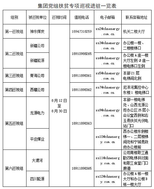 8月12日,國家能源集團黨組啟動對神東煤炭、新疆能源、新疆公司、青海公司、西藏公司、龍源電力、平莊煤業(yè)、大渡河、四川能源等9個單位的扶貧專項巡視,截至8月14日,6個巡視組全部完成進駐。