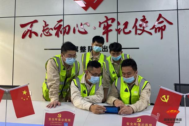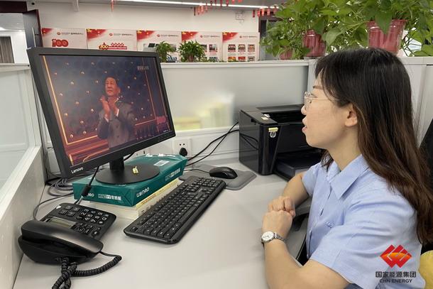 國(guó)神公司職工在工作現(xiàn)場(chǎng)收看慶祝中國(guó)共產(chǎn)黨成立100周年大會(huì)盛況