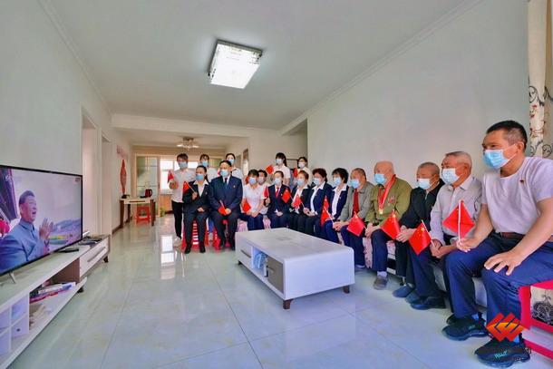 圖為國(guó)神公司和豐電廠訪惠聚工作隊(duì)隊(duì)員、社區(qū)干部與革命軍人及家屬在軍人家中收看慶祝中國(guó)共產(chǎn)黨成立100周年大會(huì)盛況