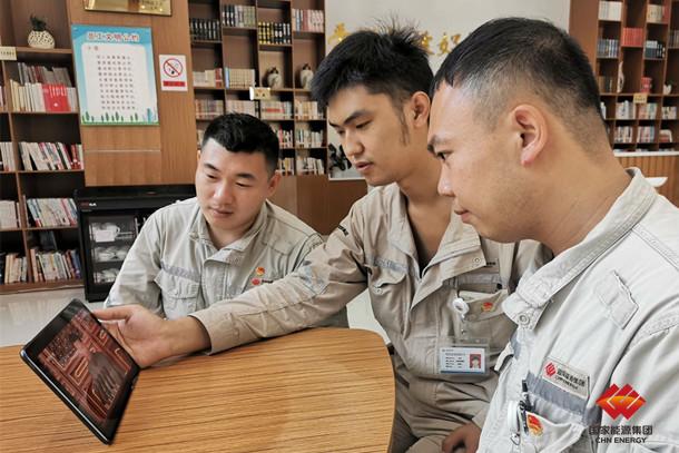 圖為海南樂東公司團員青年在圖書閱覽室收看慶祝中國共產(chǎn)黨成立100周年大會盛況