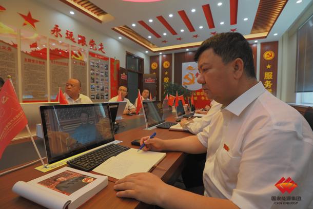 圖為新疆公司烏東煤礦黨員領(lǐng)導(dǎo)干部在黨員活動(dòng)室收看慶祝中國(guó)共產(chǎn)黨成立100周年大會(huì)