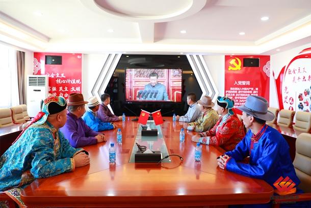 圖為勝利能源露天礦蒙古族員工在會(huì)議室收看慶祝中國(guó)共產(chǎn)黨成立100周年大會(huì)盛況