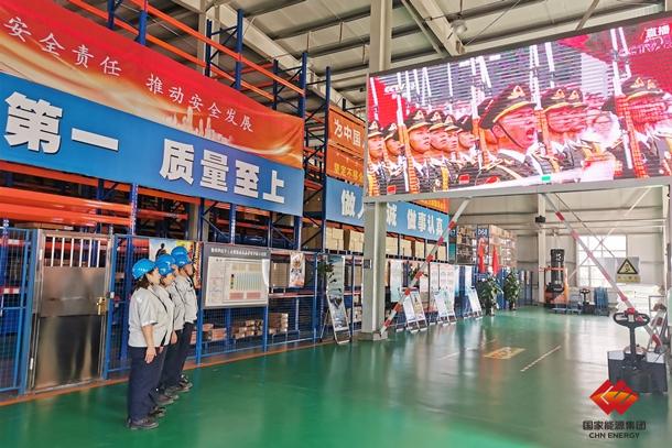 圖為勝利能源物資供應(yīng)中心員工在物資倉(cāng)庫(kù)收看慶祝中國(guó)共產(chǎn)黨成立100周年大會(huì)盛況