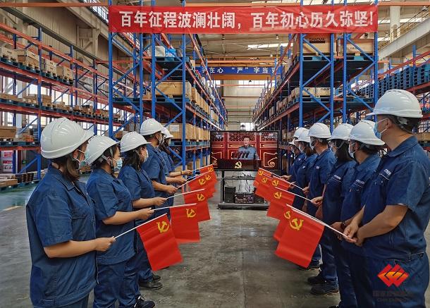 圖為物資公司保稅庫員工在庫房收看慶祝中國共產(chǎn)黨成立100周年大會盛況
