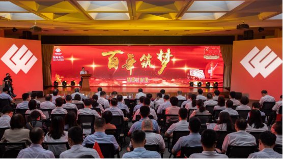 圖為國電電力黨委采取“現(xiàn)場+云直播”方式開展“百年筑夢”情景式黨課