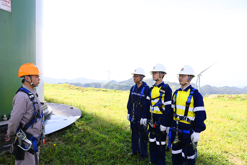 圖為天堂頂風電場副廠長李昌俊對三名風機運維人員進行安全技術交底。