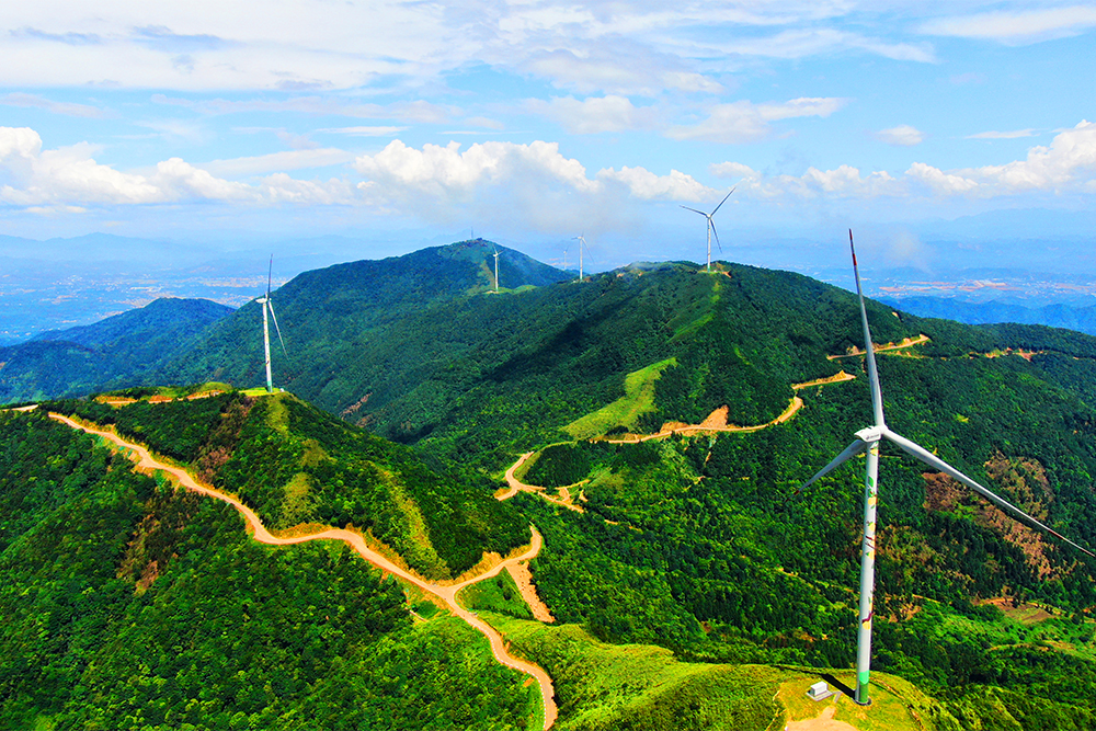 圖為廣西新能源公司天堂頂風電場航拍圖