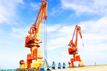 圖為已經(jīng)建成的2個10萬噸級泊位碼頭。1號件雜貨碼頭年吞吐能力160萬噸,2號散貨碼頭設(shè)計年吞吐能力981萬噸