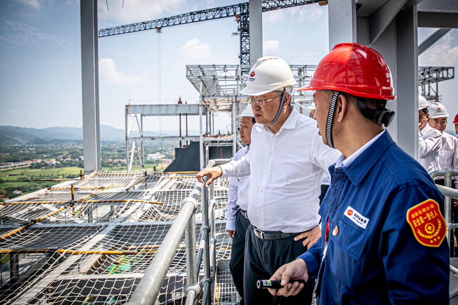 劉國(guó)躍在岳陽(yáng)電廠察看鍋爐107米平臺(tái)施工情況